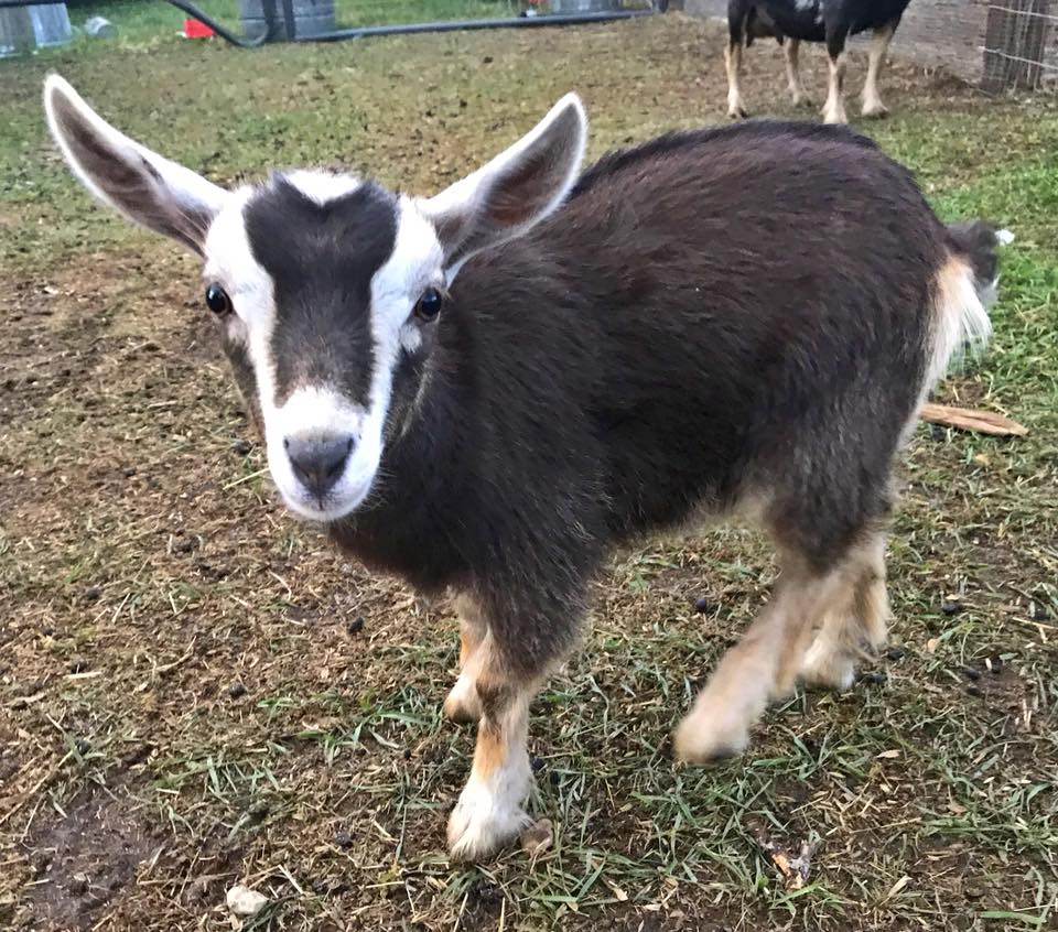 Dolly is the daughter of our gorgeous Swiss marked doe Janice. He sire is our beautiful chocolate and white buck Wild Columbine Patchouli AKA Stinky Pete. Dolly is Swiss marked with frosted ears, a white poll, roaning, and gold eyes. She is absolutely gorgeous and she is a very athletic and healthy little girl. Her mother is an amazing milk producer and she was out first doe purchased with her daughter Blondie. She comes from excellent milking lines and her dam has a superb udder, and conformation. She is very playful, friendly, and beautiful. Dolly was kidded May 10th and are ready to go to their new homes. All kids are disbudded, vaccinated, and come with registration paperwork.