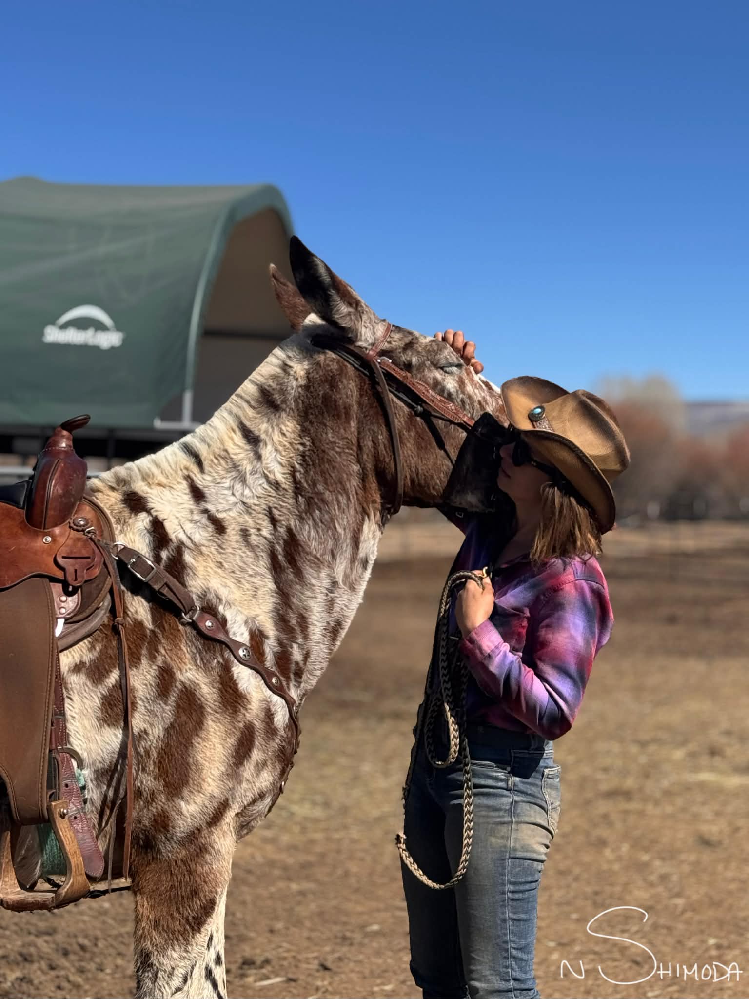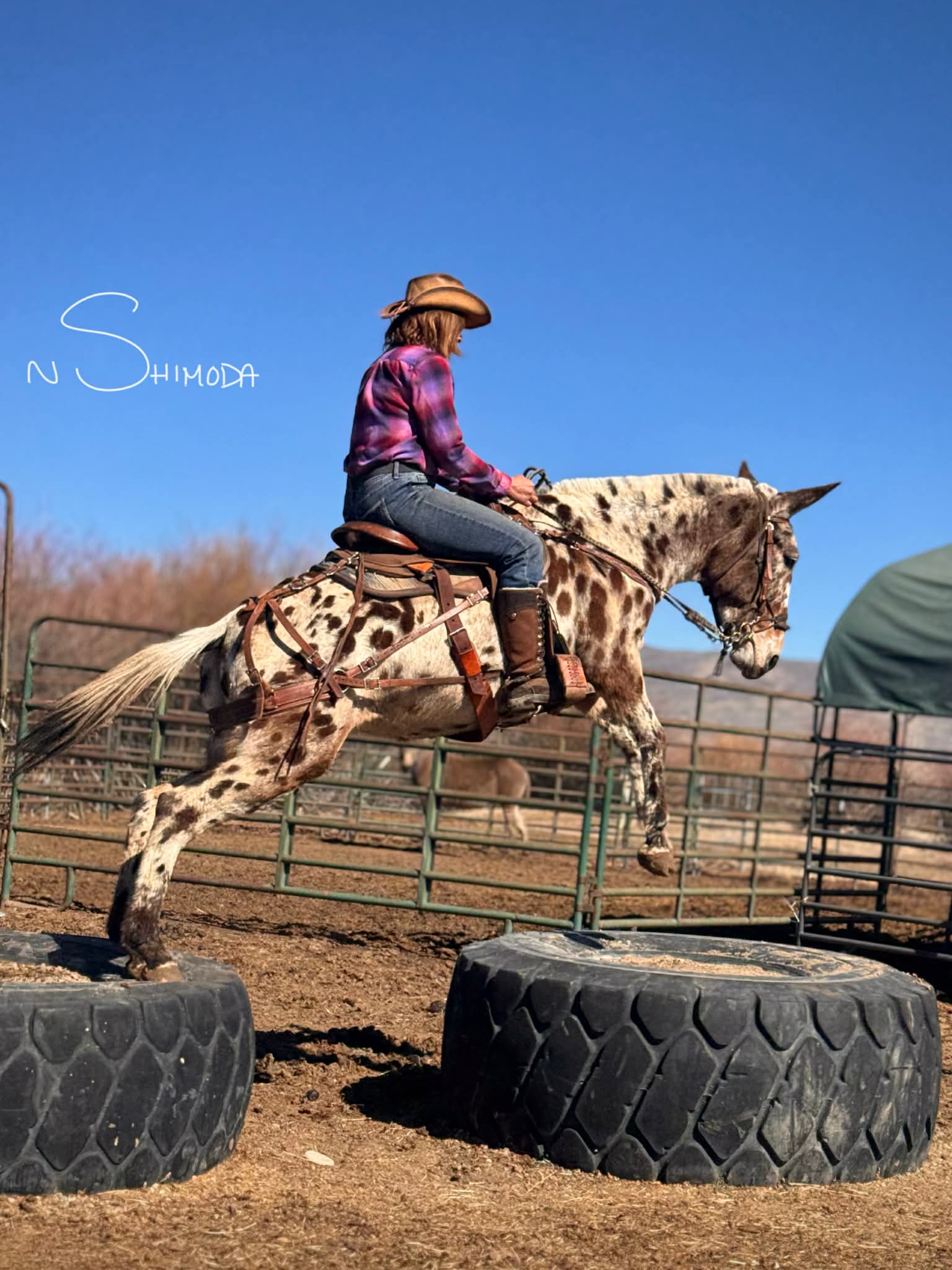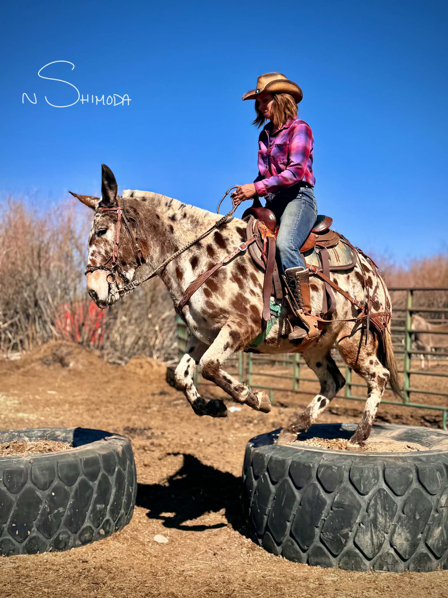 Jubilee is selling April 11th at the Colorado Horse Sale Women of the West Special Session. Online and telephone bidding is available. Jubilee is a truly exceptional 13-year-old, 14.3 hh leopard Appaloosa molly mule with the kind of presence that stops people in their tracks. She is one of the most striking and memorable mules I have ever had the pleasure of training, and she turns heads everywhere she goes. It is rare to ride her anywhere without someone stopping to compliment her beauty. I started Jubilee under saddle myself, and over the years, we have shared countless adventures together in the mountains, in town, in the desert, and in the arena.